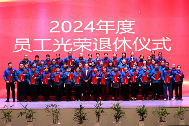 會(huì)上,為2024年度退休的員工舉辦了光榮退休儀式。公司黨委委員、紀(jì)委副書記、副總經(jīng)理孫玉濤宣讀了2024年度退休員工名單;黨委書記、董事長(zhǎng)盛守祥為退休員工代表頒發(fā)榮譽(yù)證書;退休員工張炳營(yíng)代表67位退休員工作退休感言。
